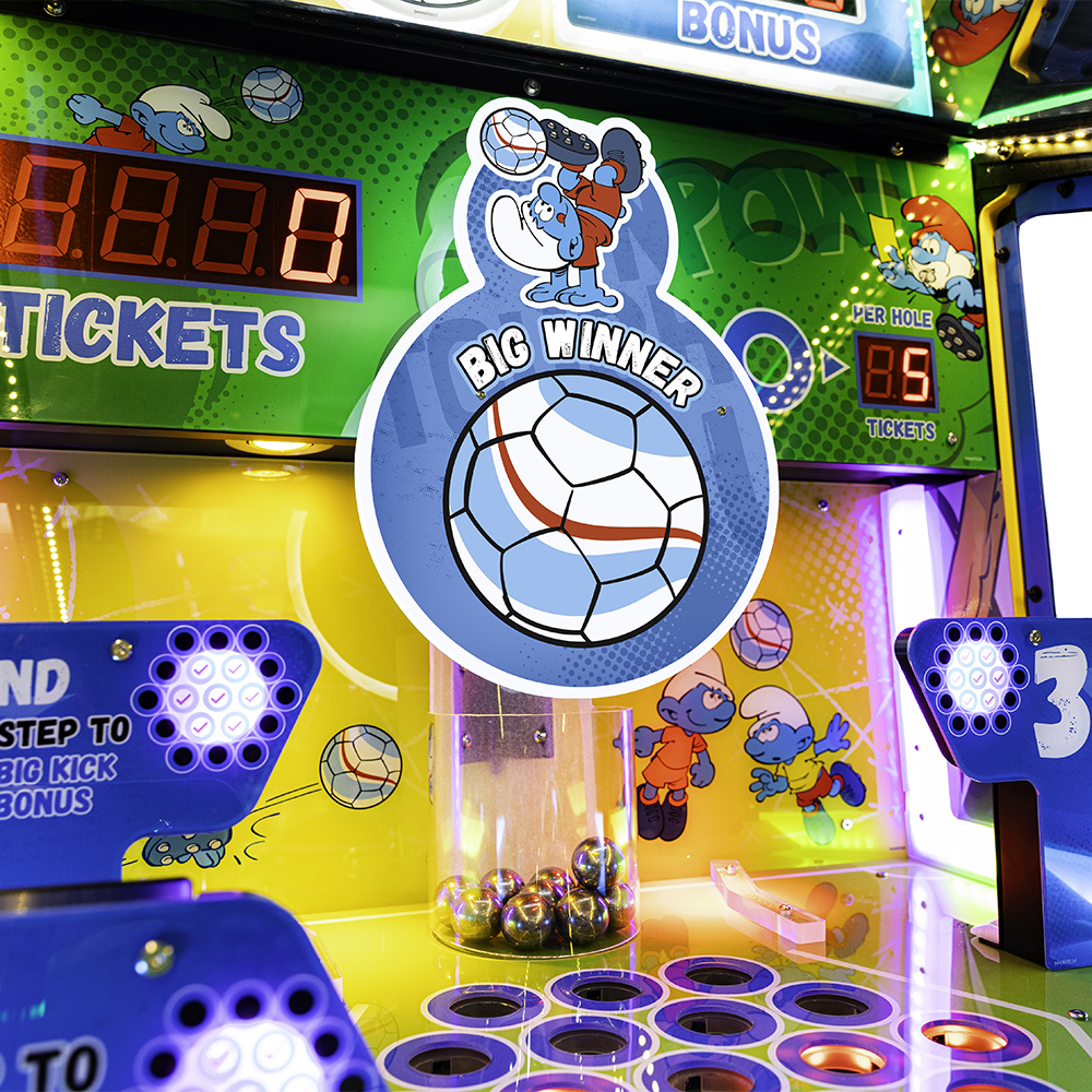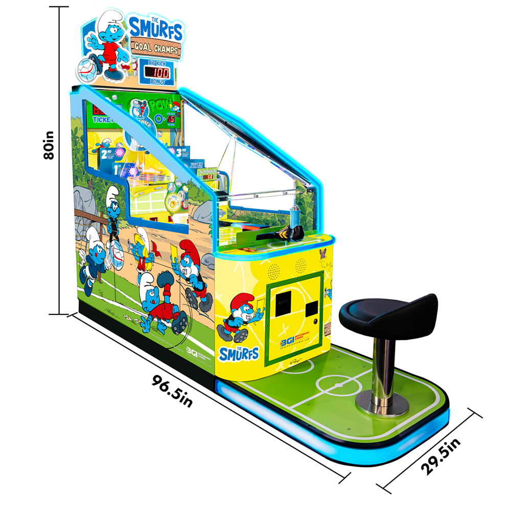 Officially licensed from the creators of the beloved blue characters, The Smurfs Goal Champs brings their playful world to life. Players shoot the ball into the goal to unlock thrilling Soccer Bonus and Big Kick Bonus rounds, earning tickets with every score. Packed with fun challenges and repeat-play appeal, this game keeps players engaged while driving revenue.
