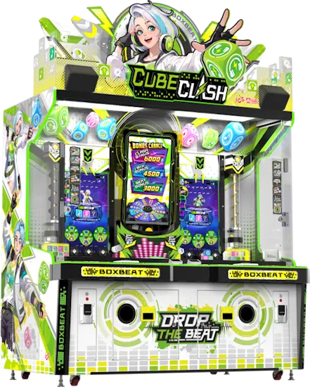 Cube Clash puts a bold, modern spin on the classic pusher game with cube-shaped prizes that stack, tumble, and trigger exciting chain reactions. Easy to play yet packed with bonuses and big-win moments, its eye-catching design and immersive lights and sounds make it a high-earning, must-have attraction for any redemption or amusement floor.