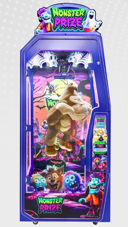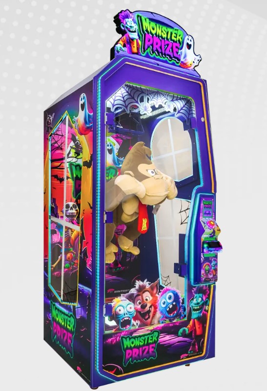 Monster Prize is an attention-grabbing merchandiser designed to deliver a thrilling prize-winning experience. It features striking artwork and a glowing LED light show, plus immersive sound design to draw players in. With a sturdy metal-and-glass build and simple one-button gameplay, it’s easy for anyone to take a shot at winning.